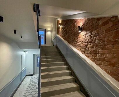 Цель реализации проекта – обновление здания без потери его исторического облика. Реконструкция предусматривает полную замену коммуникаций и инженерного оборудования. Дом разделен на два подъезда. Для их отделки использован мрамор и декоративный кирпич. ЖК Калинина включает 63 квартиры площадью от 17.36 до 30.69 м2 с высотой потолков от 3 метров. Толщина наружных стен здания составляет 70 см, что гарантирует тепло и защиту от шума.